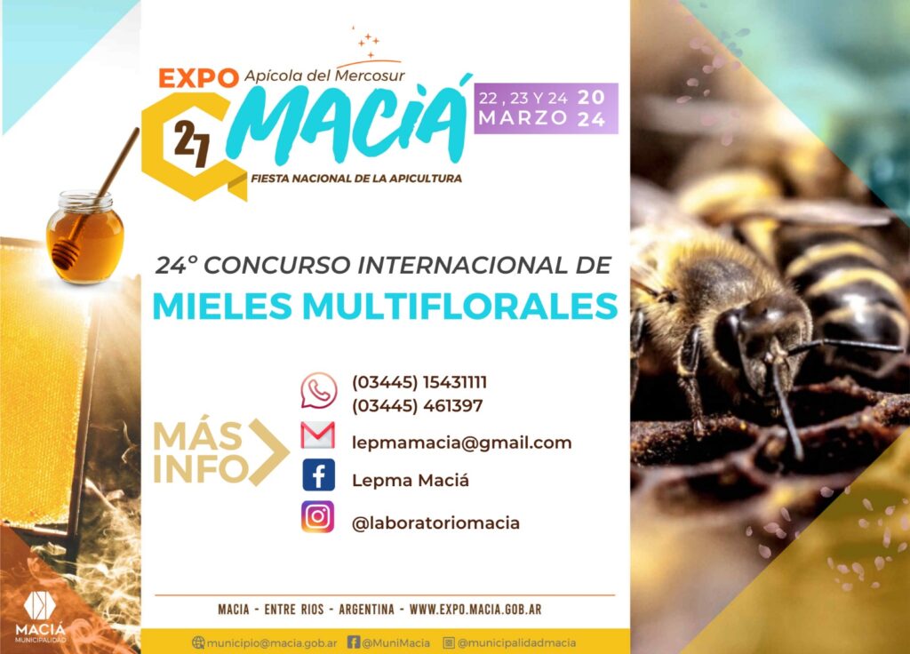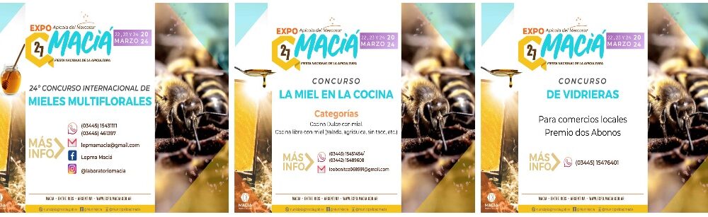 En el marco de la 27° Fiesta Nacional de la Apicultura y Expo Apícola del Mercosur, que se realizará el 22, 23 y 24 de marzo en el Predio Multieventos de Maciá, se realizará el Concurso Internacional de Mieles Multiflorales, el Concurso La Miel en la Cocina y el Concurso de vidrieras para comercios de la ciudad.