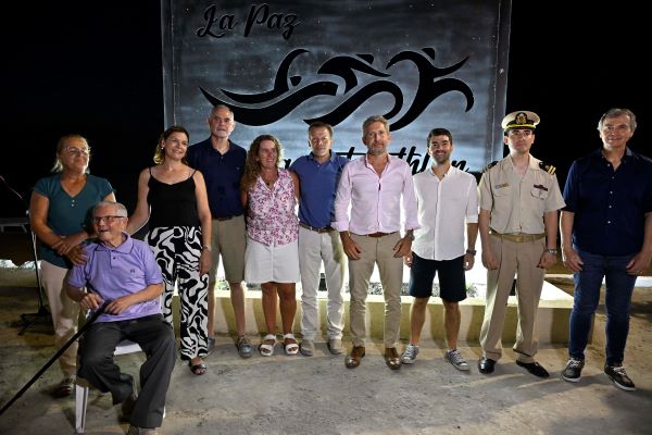 En el acto que se desarrolló frente al puerto local, el mandatario estuvo acompañado del intendente, Walter Martin. Allí se inauguró un monumento, frente a Prefectura, que consiste en una plancha de acero con un lema grabado que reza: «La Paz tierra de Triatlón», frase característica de cada edición. También consta de unas siluetas que representan las tres disciplinas y diferentes placas al pie del monumento.