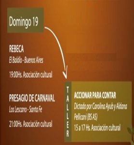 Además las actrices y directoras Carolina Ayub y Aldana Pellicani, oriundas de Buenos Aires, dictarán el taller “Accionar para contar” para toda la comunidad de Nogoyá. El mismo se realizará el domingo 19 de mayo en el horario de 15 a 17 en la Asociación Cultural. Vale aclarar que no es necesario tener experiencia previa y que tiene un costo de 300 pesos.
