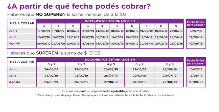 En todos los casos, la fecha límite para cobrar el haber será el 10 de julio.