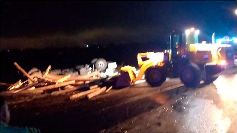 El accidente se produjo cuando el camión Mercedes Benz con acoplado, transitaba la rotonda, despistó de la ruta y volcó hacia la banquina. “Compañeros que iban detrás del camión, explicaron que vieron cómo el vehículo empezó a derrapar, perdió el control del camión y volcó”, dijo el Subjefe Departamental de Policía.